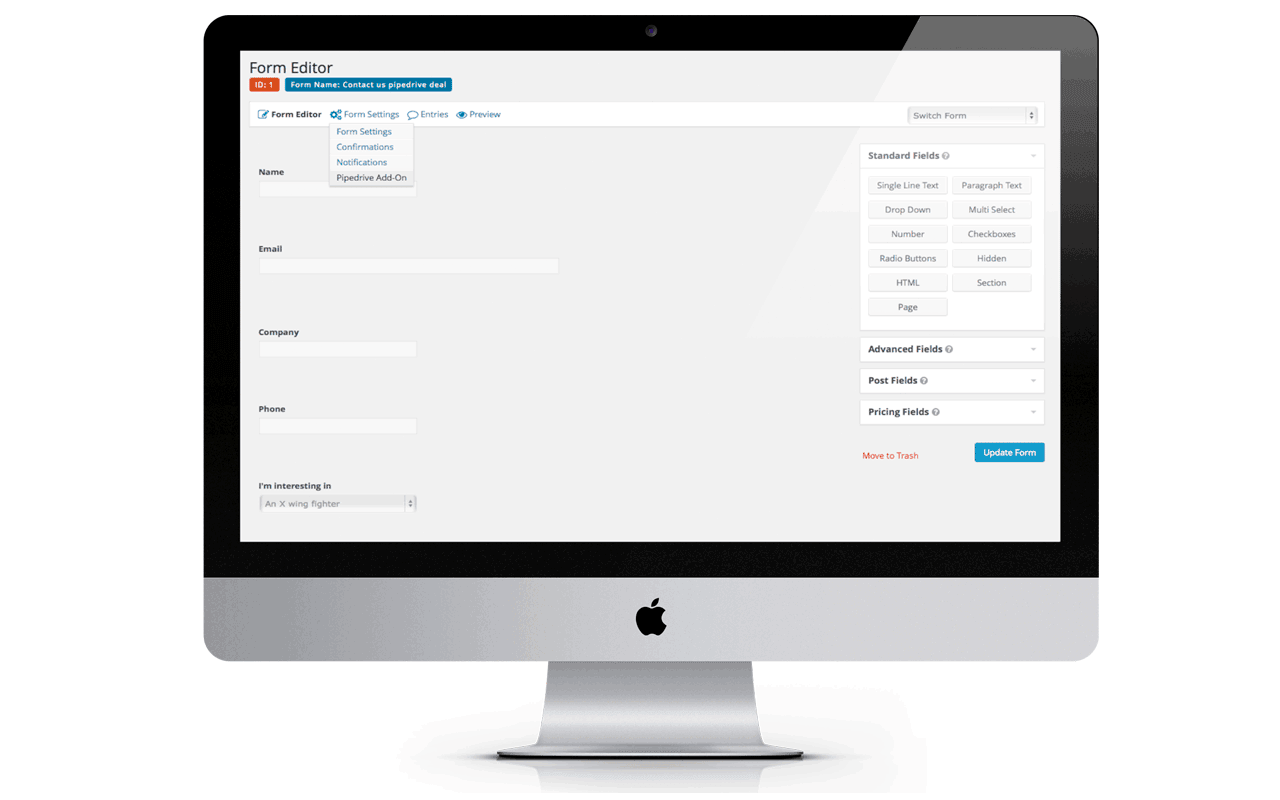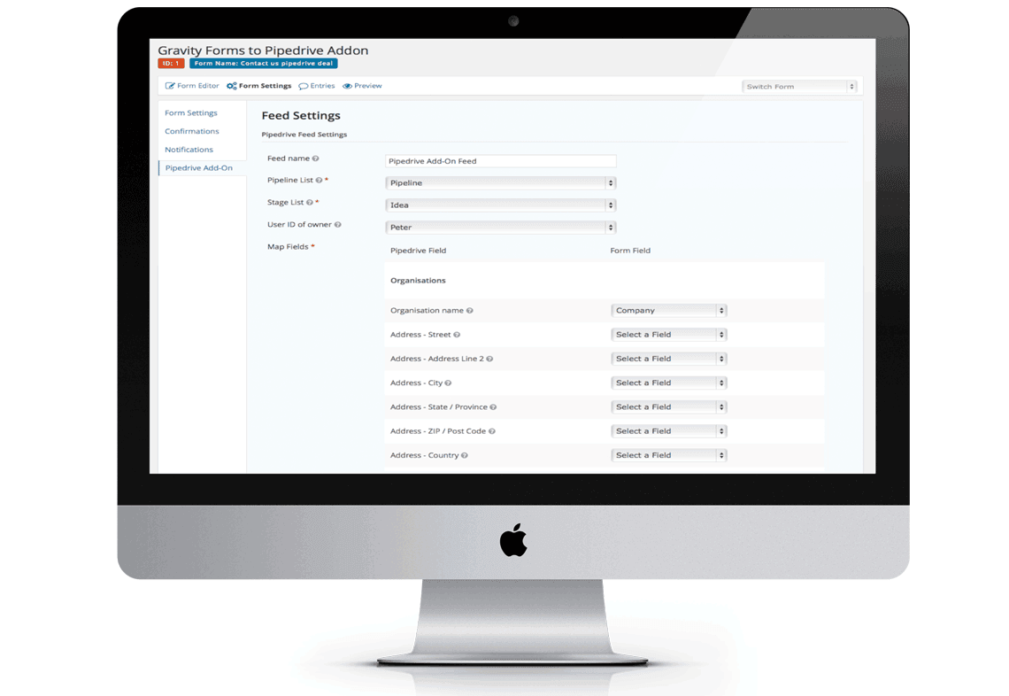 Gravity Forms Pipedrive CRM-järjestelmälle